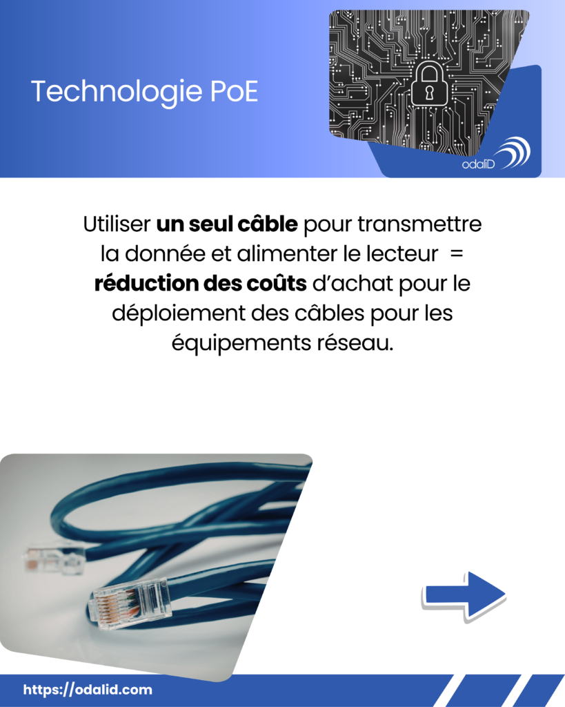 Power over Ethernet (PoE) is a networking feature that allows network devices to be powered via Ethernet cables. A single cable is used to transmit data and power the reader.